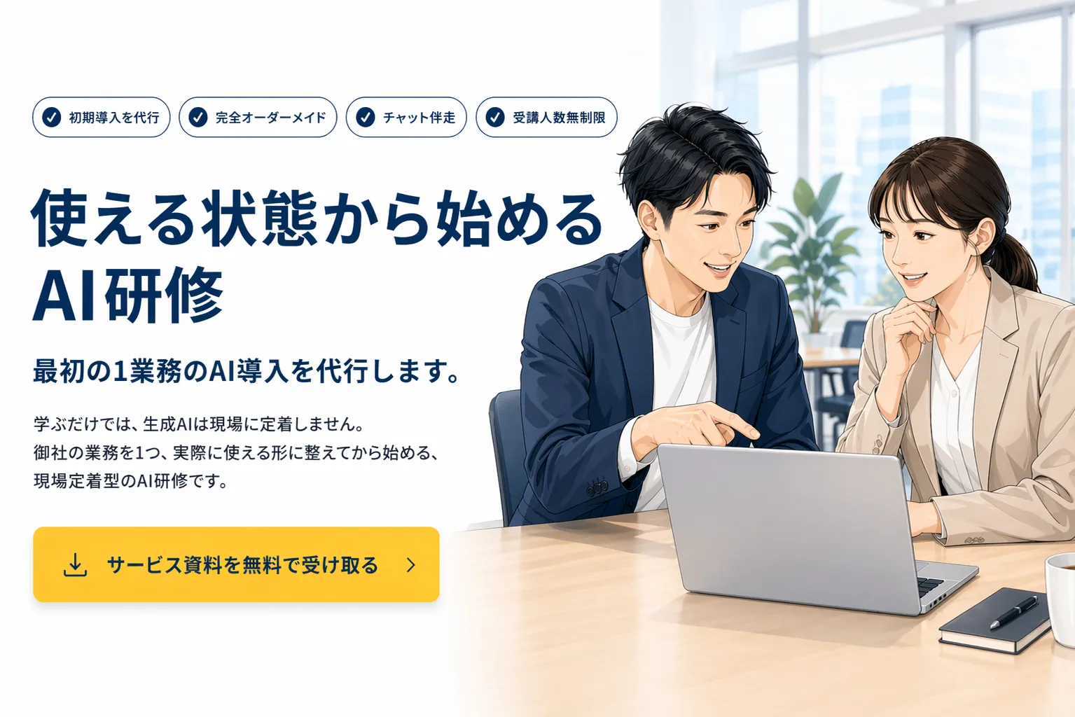 研修の前に、最初の1業務のAI導入を代行します