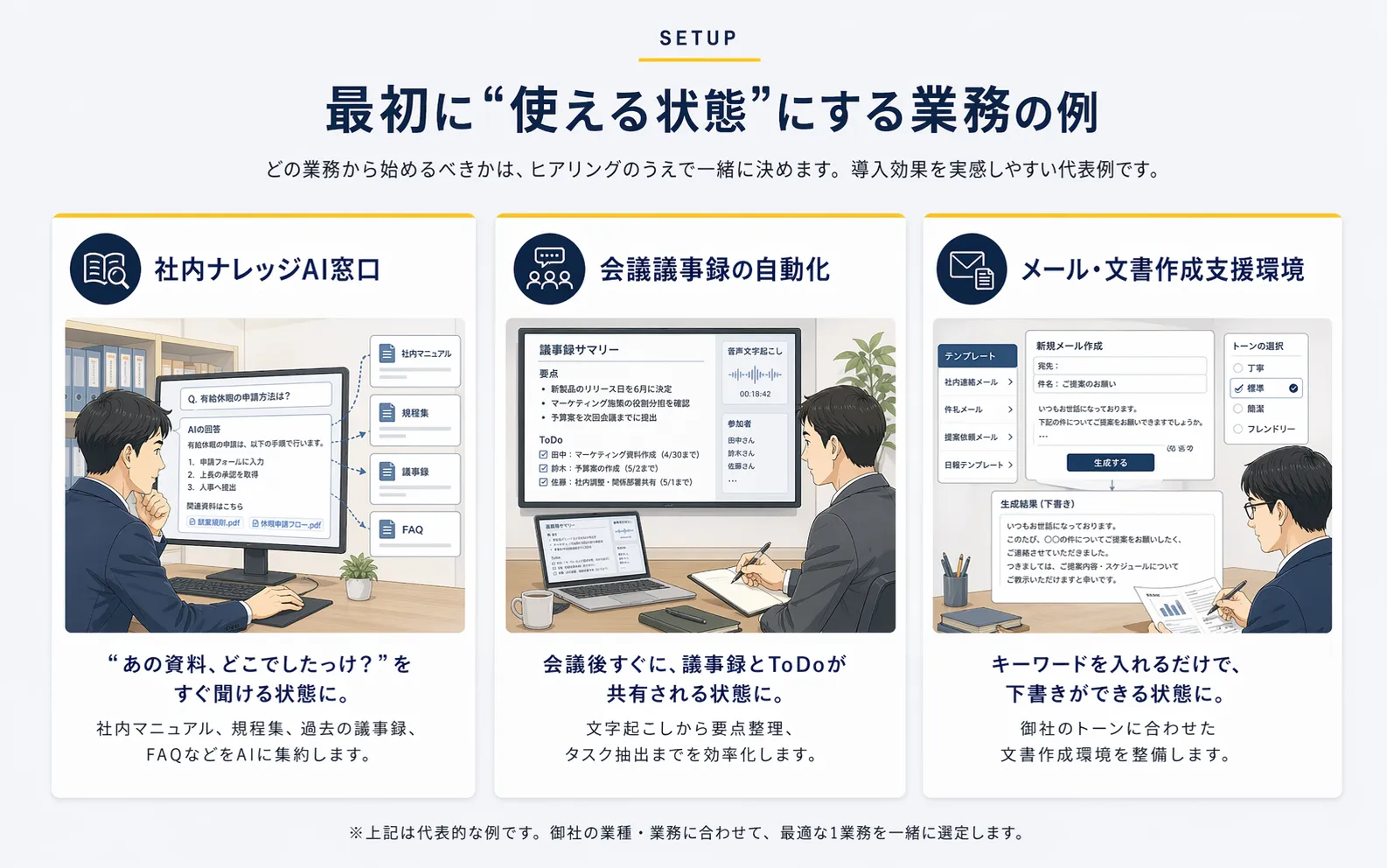 ※上記は代表的な例です。御社の業種・業務に合わせて、最適な1業務を一緒に選定します。