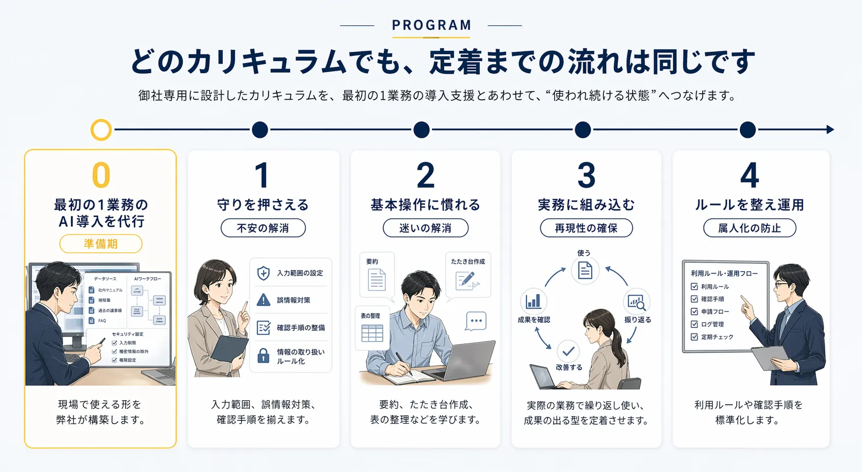御社専用に設計したカリキュラムを、最初の1業務の導入支援とあわせて、