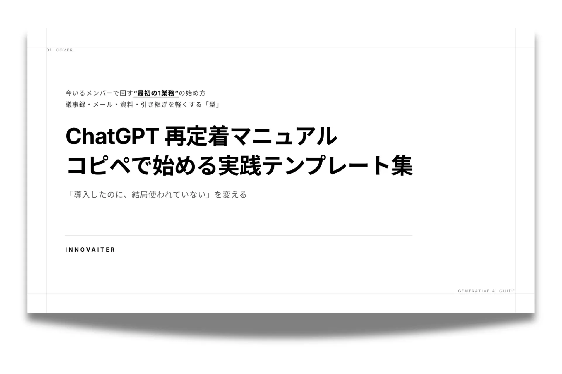 本資料では、効果が出やすい”最初の1業務”に絞って、議事録・メール・資料・引き継ぎをすぐに試せる「型」をまとめました。